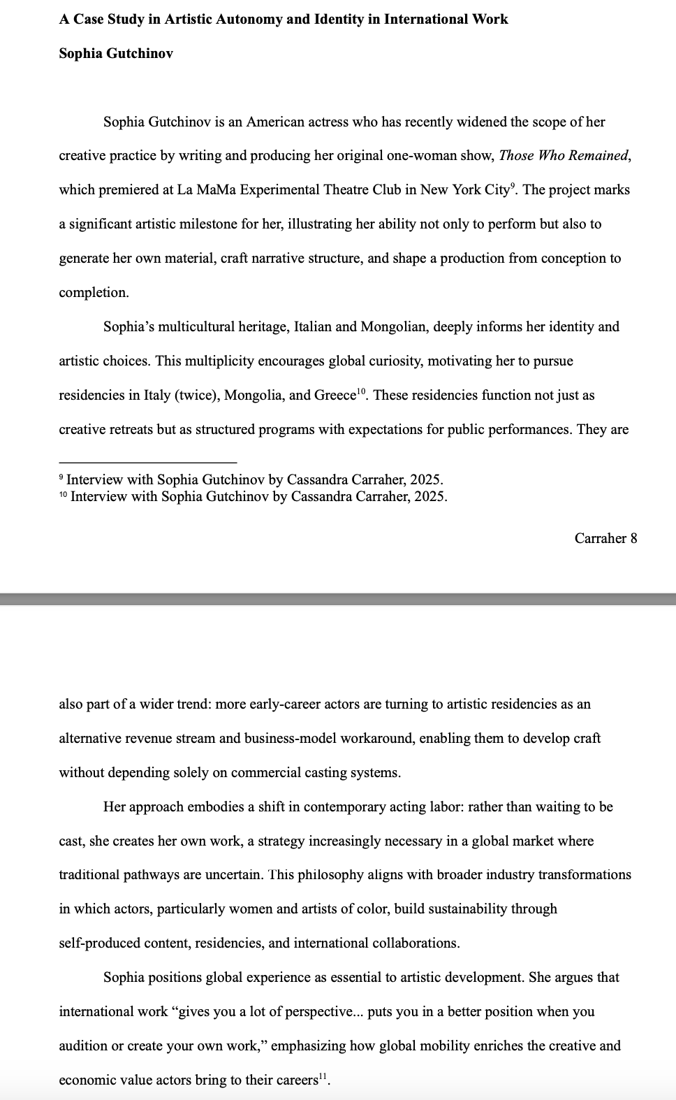 Sophia was part of this research paper by Cassandra Carraher about actors working abroad, including the challenges and benefits to being international! Also featured here are Timothée Chalamet and Song Kang-ho! Carraher also recently completed her internship at Breakdown Services/Actors Access. She currently studies at UCLA for her Bachelor of Arts in the Music Industry program.
